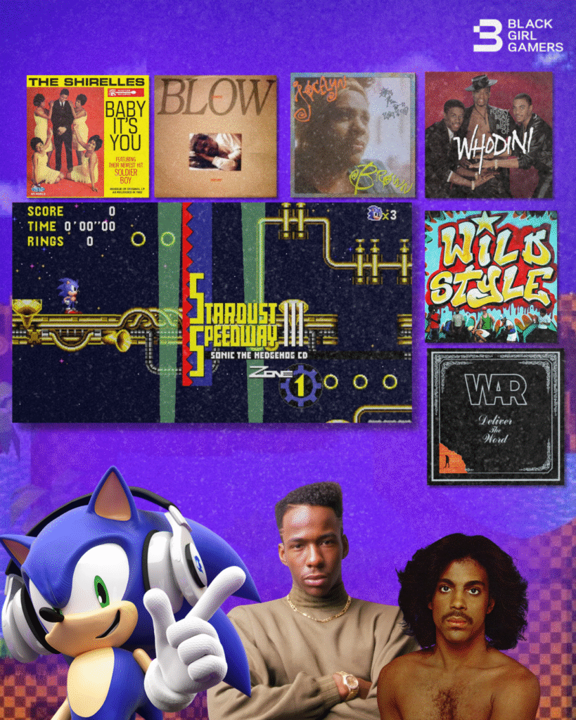 Sonic soundtracks across eras echo or sample works from artists such as Jocelyn Brown (“I’ve got the power” from Love’s Gonna Get You appears on Stardust Speedway (Bad Future) on the Sonic CD) but also War, Kool & The Gang, Xavier, Kurtis Blow, Whodini, The Shirelles, Grand Wizzard Theodore and the list goes on.