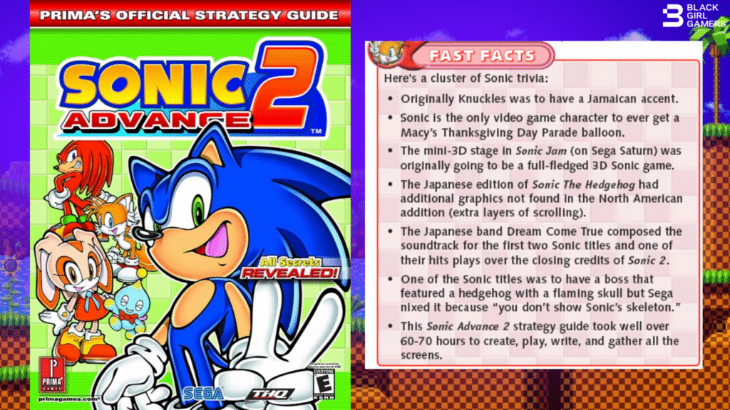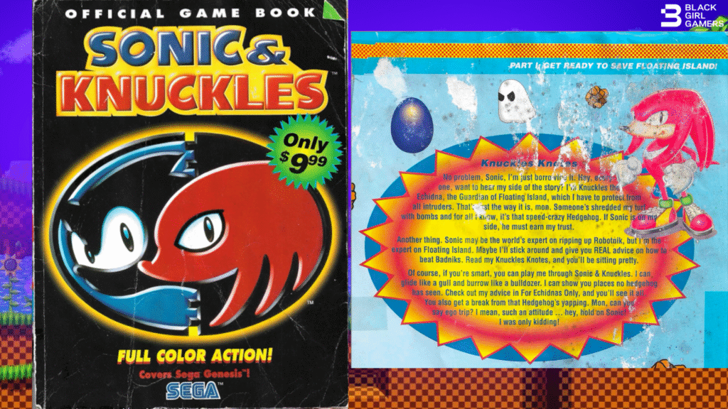 There’s cultural context that lead us here, though this time via ties to Jamaican culture. In Prima’s Official Strategy Guide: Sonic Advance 2, a professional publication that often licensed publisher-approved strategy guides (oh my gosh, remember those?), Knuckles was originally intended to have a Jamaican accent. This fact is further confirmed by the Sonic & Knuckles Official Game Book where you can find “Knuckles Knotes” in which Knuckles speaks in a highly questionable, but no doubt intentional attempt at Jamaican patois, “mon”.